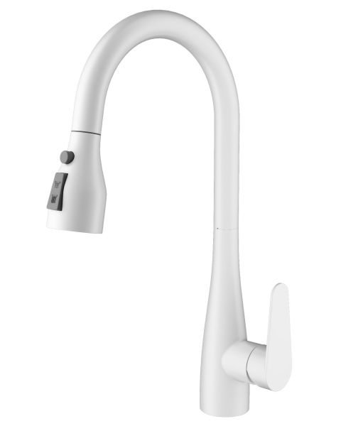 Смеситель для кухни Wonzon & Woghand WW-121E201B-MW с выдвижным изливом белый матовый купить