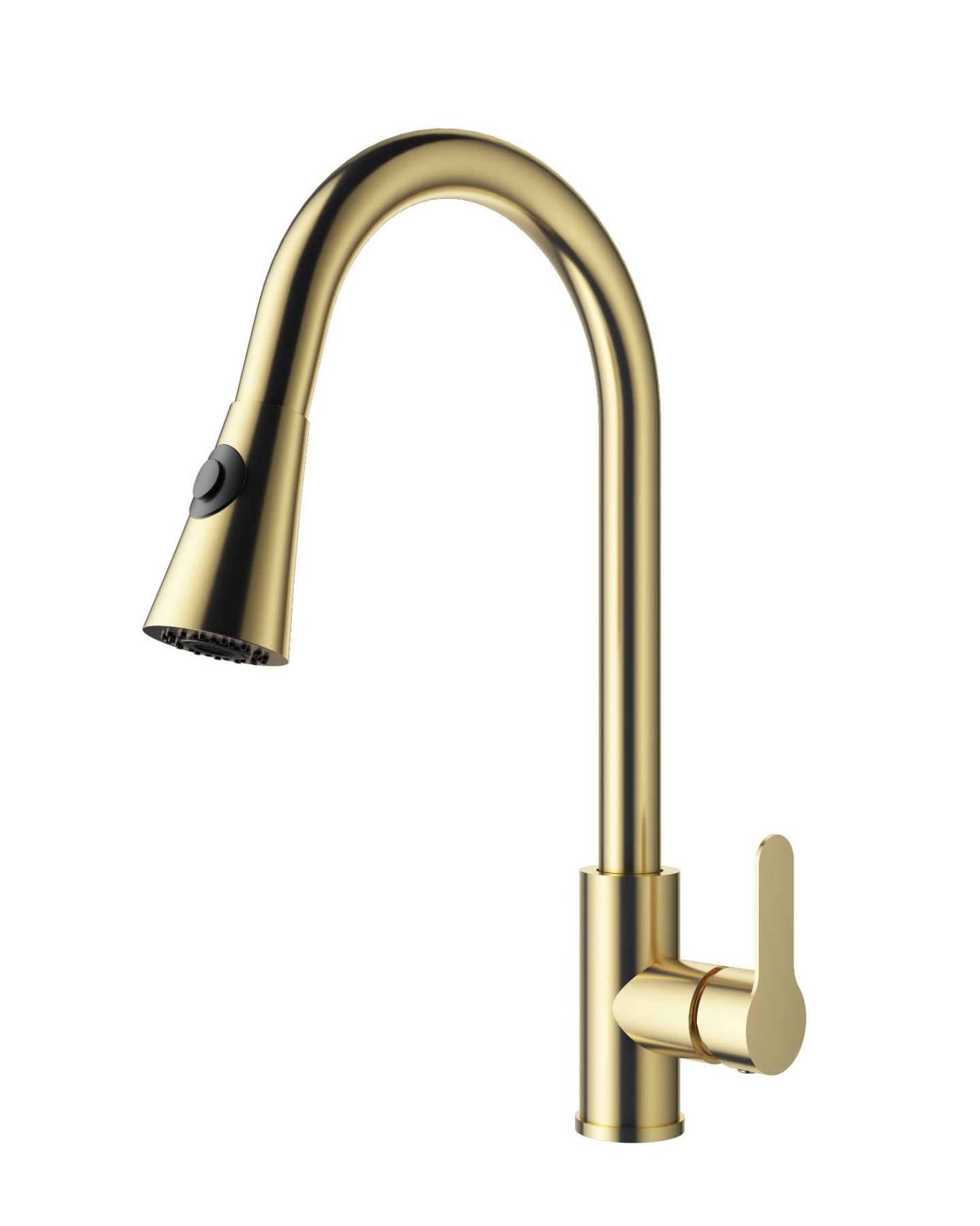 Смеситель для кухни с выдвижным изливом WONZON & WOGHAND, Брашированное золото (WW-121E201L-BG)