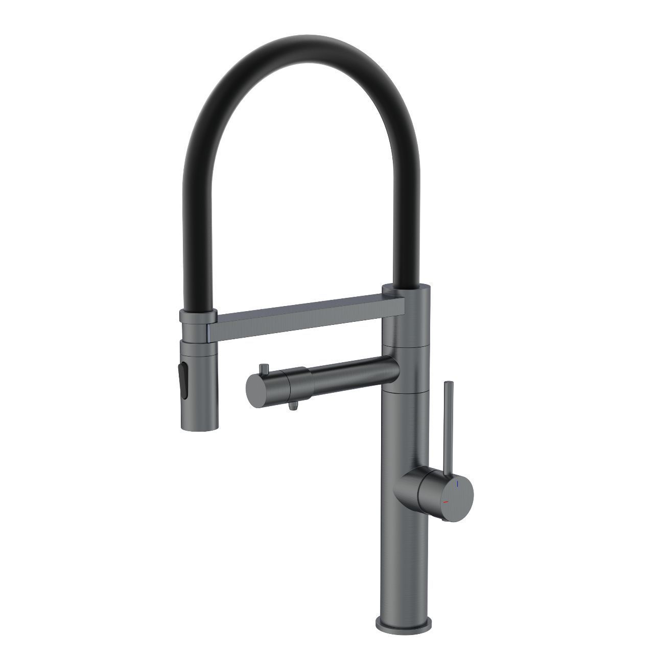 Смеситель для кухни с гибким изливом и подключением фильтра WONZON & WOGHAND, Темный графит (WW-88458007-BGM)