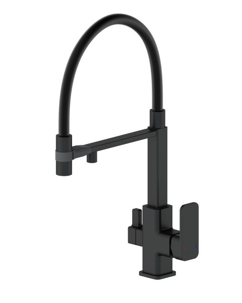Смеситель для кухни с гибким изливом и подключением фильтра WONZON & WOGHAND, Черный матовый (WW-88458012-MB)