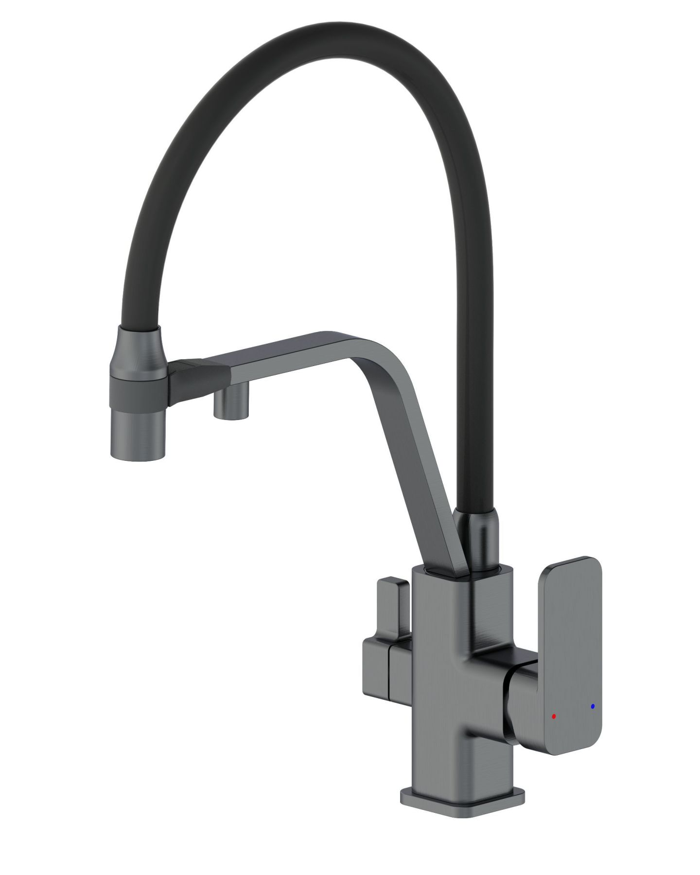 Смеситель для кухни Wonzon & Woghand WW-88458013-BGM с гибким изливом и подключением фильтра тёмный графит