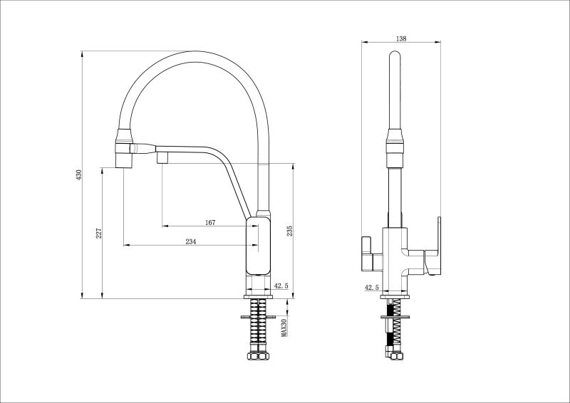 Смеситель для кухни с гибким изливом и подключением фильтра WONZON & WOGHAND, Брашированн... Подробнее