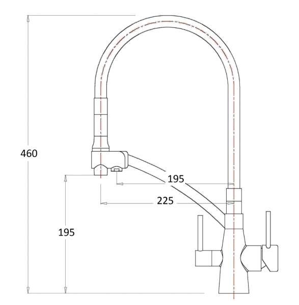 • Высота смесителя: