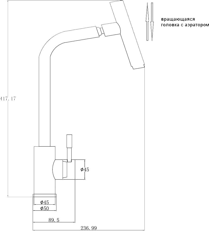 • Высота смесителя: