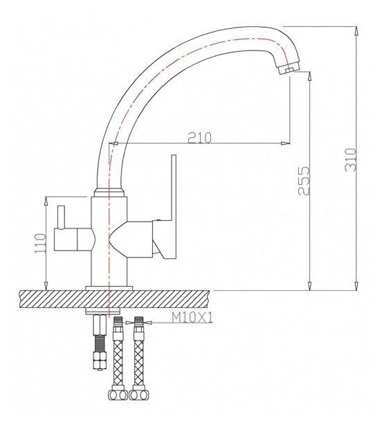 • Высота смесителя: