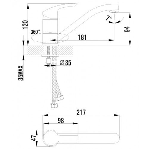 • Высота смесителя: