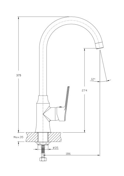 • Высота смесителя: