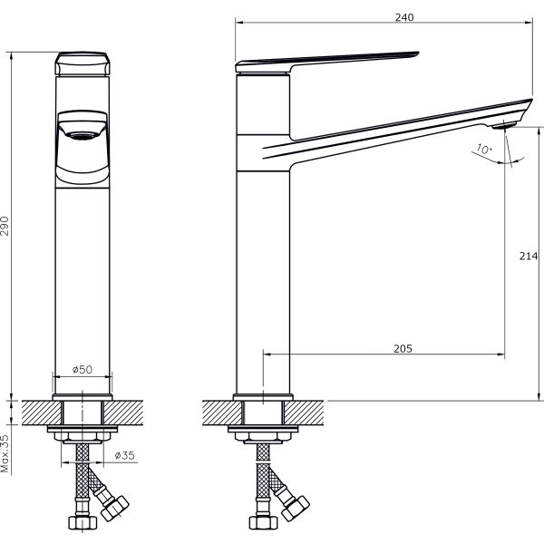 Смеситель для кухни RUSH арт. BE5535-22 с поворотным изливом из коллекции Bering изготовлен из высококачественной латуни и имеет рычажное управление. В смеситель установлен картридж D-35 с керамическими пластинами. Высота смесителя 290 мм. Излив поворотный, 205 мм. Высота излива до аэратора 214 мм. Аэратор изготовлен из пластика с нержавеющим корпусом, угол наклона аэратора- 10 гр. В комплекте гибкая подводка с латунными гайками 45 см - 2шт, универсальная присоединительная группа для установки на горизонтальную поверхность, фум-лента, индивидуальный пакет, паспорт, гарантийный талон.
