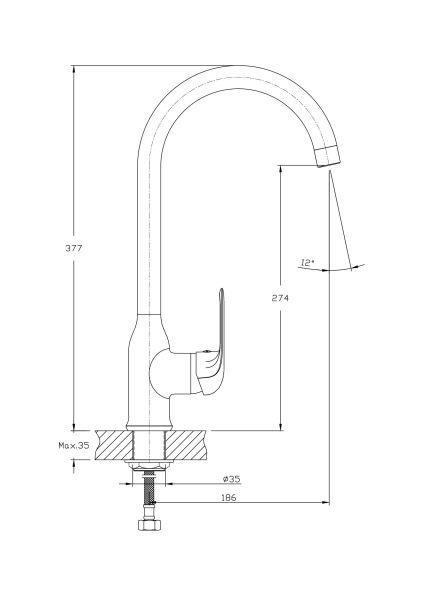 Смеситель для кухни с поворотным изливом RUSH арт.FI7135-23 из коллекции Fiji c металлической ручкой и имеет рычажное управление. В смеситель установлен картридж D-35 (RSH102) с керамическими пластинами. Высота смесителя 377 мм. Излив поворотный 360гр, 186мм. Высота излива до аэратора 274 мм. Аэратор изготовлен из пластика с нержавеющим корпусом, угол наклона аэратора- 12 гр. В комплекте гибкая подводка с латунными гайками 35см - 2 шт, присоединительная гайка S-32(34)мм, втулка-31мм, фум-лента, индивидуальный пакет, паспорт, гарантийный талон.