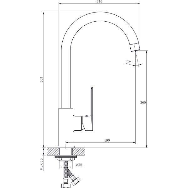Смеситель для кухни RUSH арт. LU1630-22 с поворотным изливом из коллекции Luson изготовлен из высококачественной латуни и имеет рычажное управление. В смеситель установлен картридж D-30 с керамическими пластинами. Высота смесителя 361 мм. Излив поворотный, 190 мм. Высота излива до аэратора 260 мм. Аэратор изготовлен из пластика с нержавеющим корпусом, угол наклона аэратора - 12 гр. В комплекте гибкая подводка с латунными гайками 45 см - 2шт, универсальная присоединительная группа для установки на горизонтальную поверхность, фум-лента, индивидуальный пакет, паспорт, гарантийный талон.