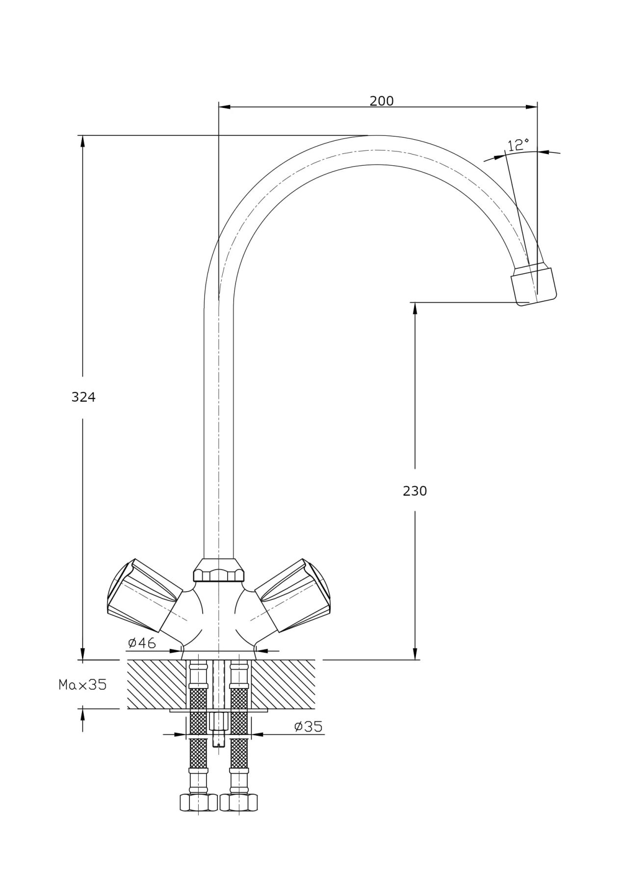 Смеситель для кухни с высоким, поворотным изливом RUSH арт. PI7950-23 с металлической ручкой из коллекции Pioneer изготовлен из высококачественной латуни и имеет вентильное управление. В смеситель установлены кран-буксы (RSH502) с керамическими пластинами. Высота смесителя 324 мм. Излив поворотный (360гр), 200 мм. Высота излива до аэратора 230 мм. Аэратор изготовлен из пластика с нержавеющим корпусом, угол наклона - 12 гр. В комплекте универсальная присоединительная группа (шпилька-2шт), гибкая подводка с латунными гайками 35см - 2шт, фум-лента, индивидуальный пакет, паспорт, гарантийный талон.
