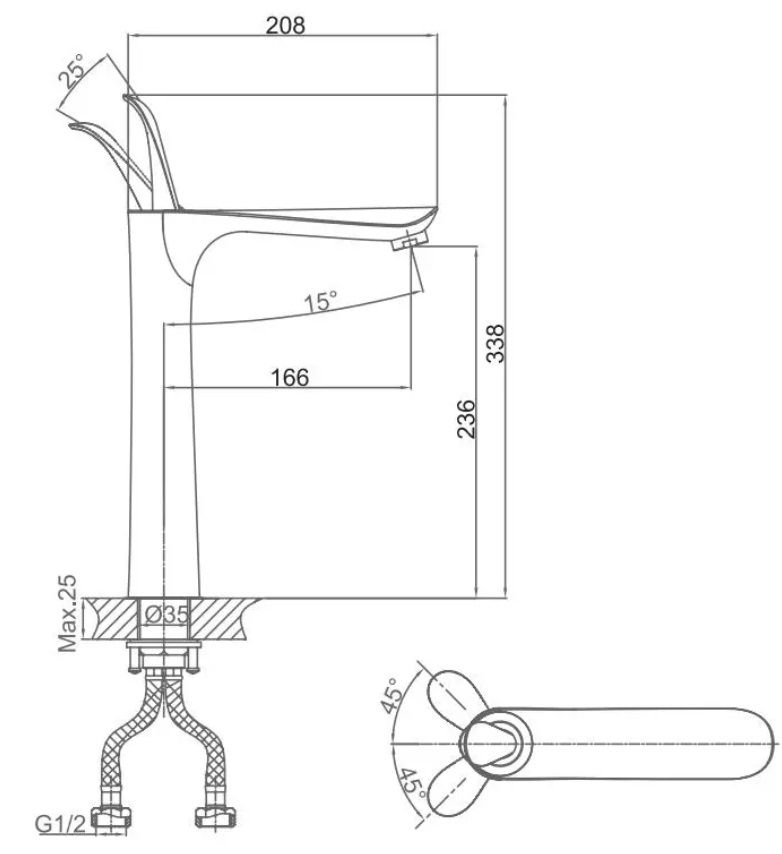 • Высота смесителя: