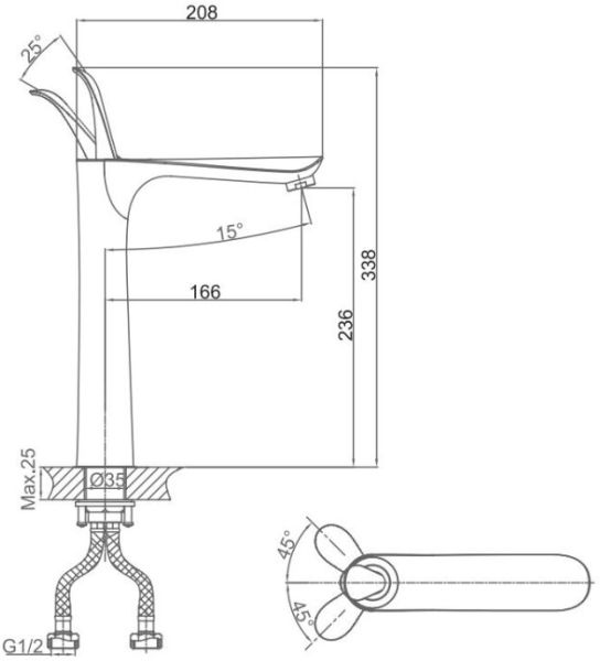 Высота смесителя:33.8