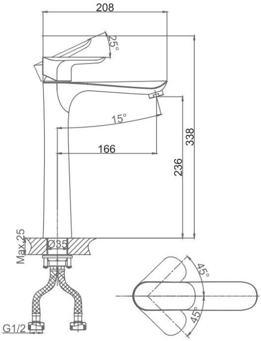 Смеситель для накладной раковины DQ Venice Baciano хром DA1032001