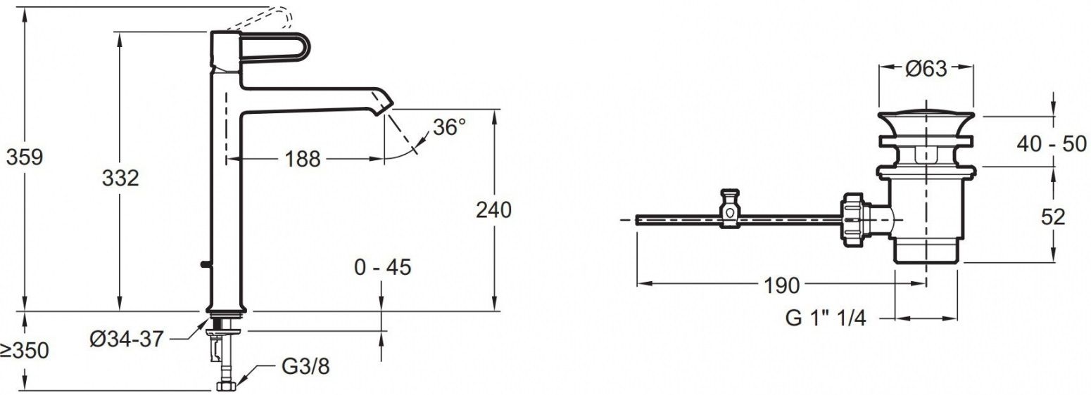 • Струя воды смесителя направлена к центру раковины для комфортного ежедневного использования