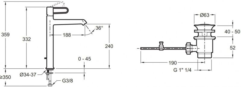 • Керамический дисковый картридж 25 мм интегрирован в корпус смесителя и дает точную регулировку температуры
