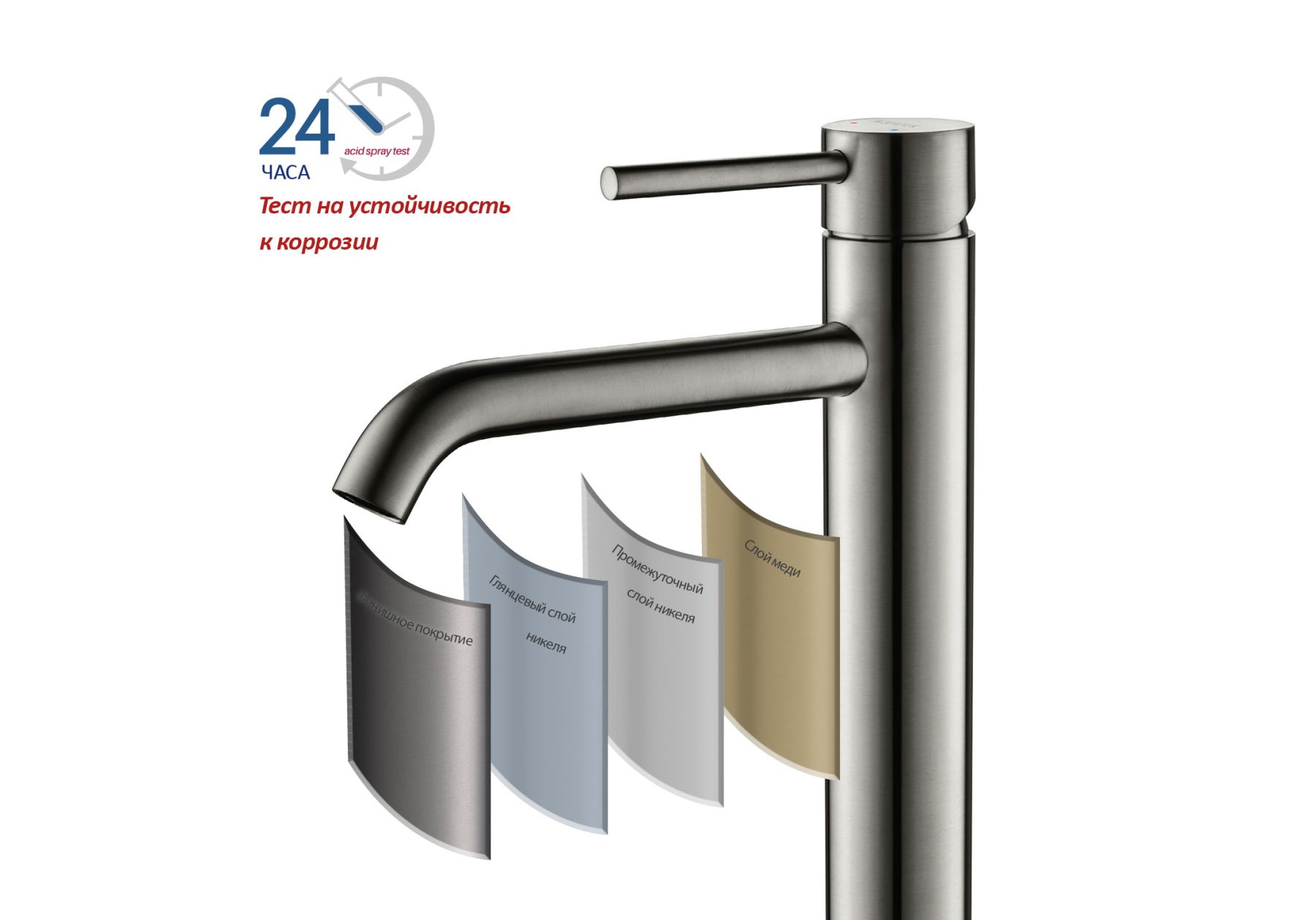 • Оснащен высоким изливом, удобен для мытья крупных предметов