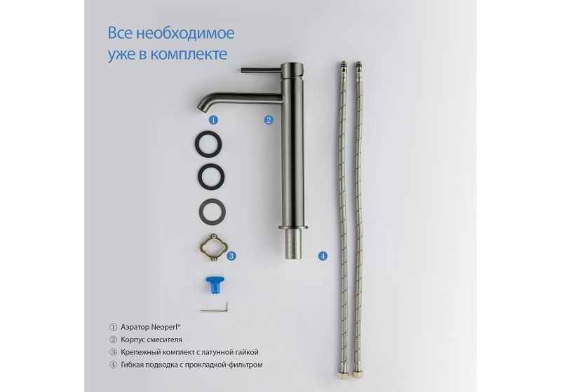 Комплект поставки • Смеситель • Гибкая подводка 60см • Монтажный комплект &bull... Подробнее