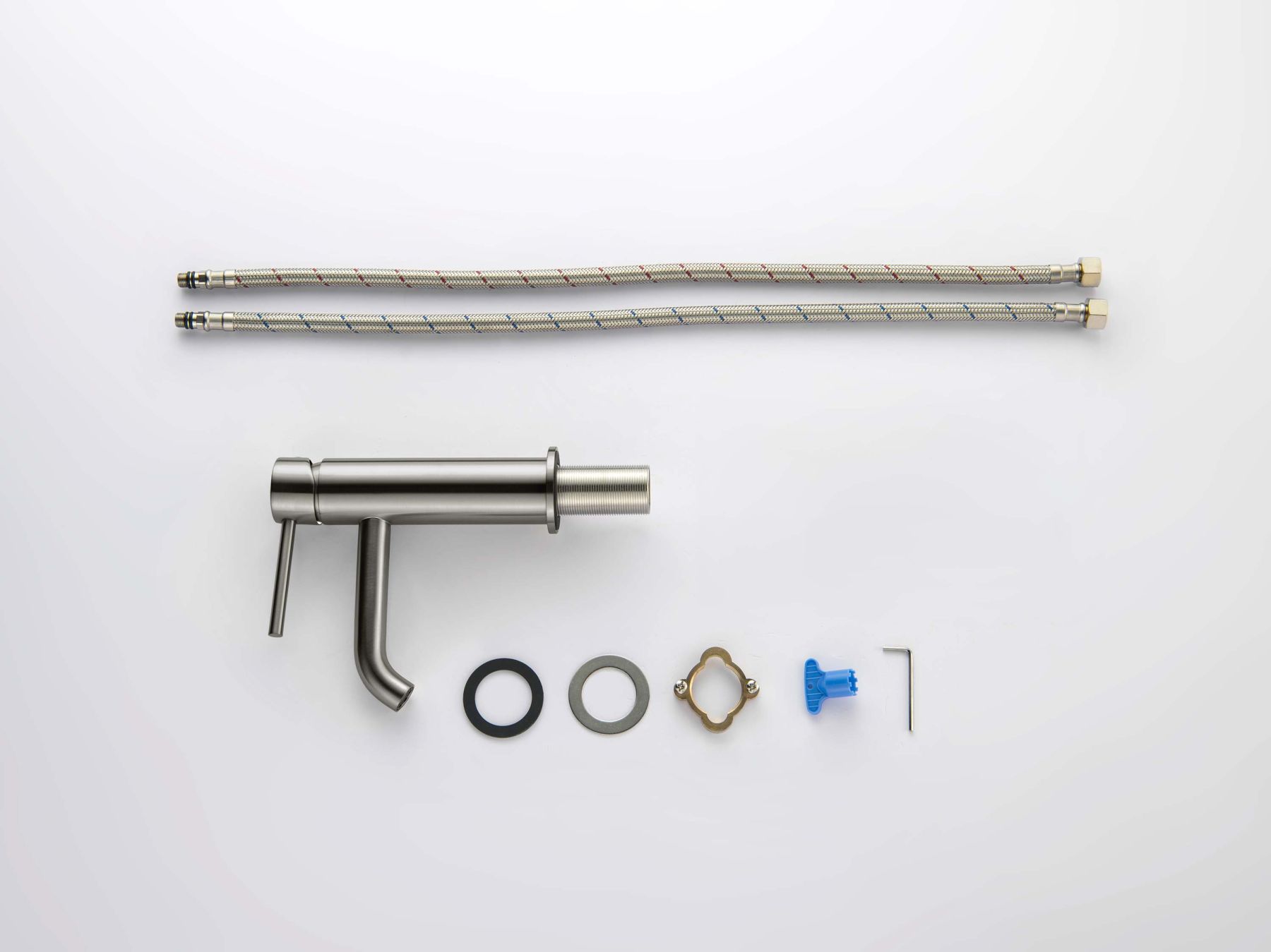 В комплект входят все необходимые крепления и подводка 60 см в металлической оплетке, что делает установку максимально простой и удобной. Подводка дополнительно оснащена прокладкой с сетчатым фильтром.