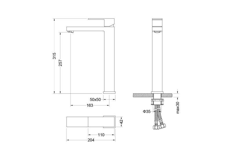• Оснащен высоким изливом, удобен для мытья крупных предметов