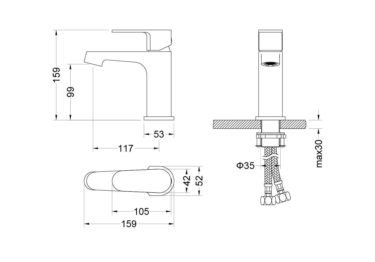 • Цельный корпус смесителя снижает вероятность протечек