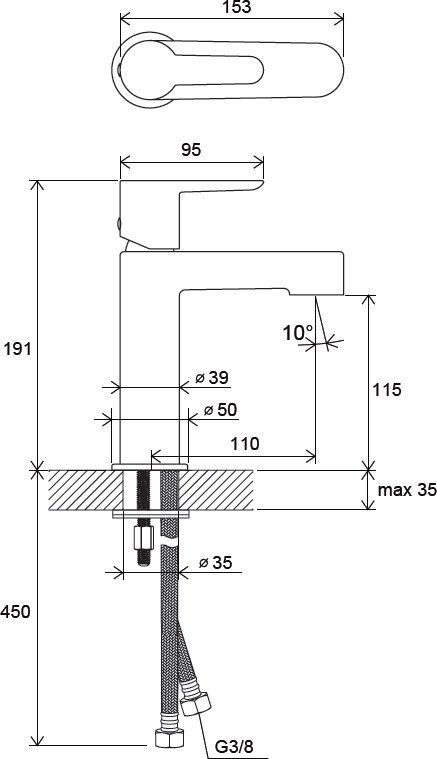 • Высота смесителя:
