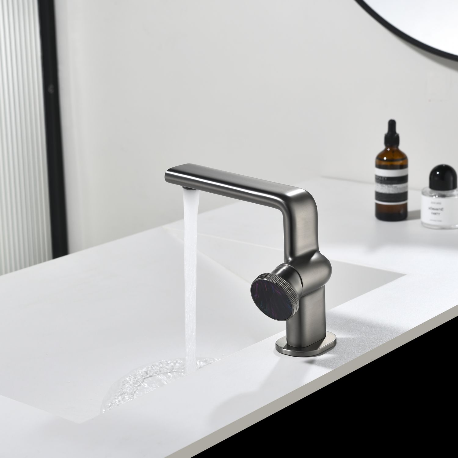 Смеситель для раковины Black&White Gravity 7207GM оружейная сталь