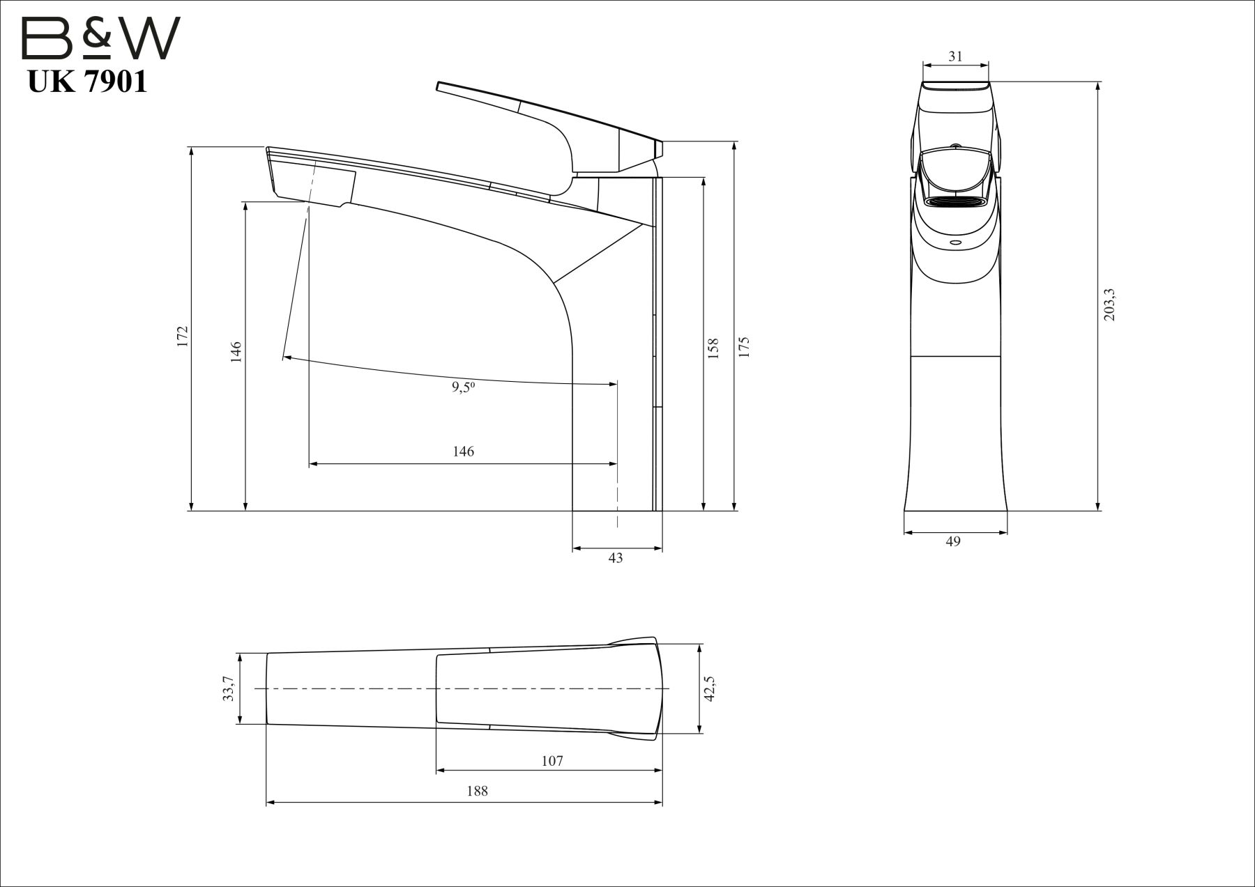 Смеситель для раковины Black&White Universe 7901B с выдвижным изливом чёрный матовый купить