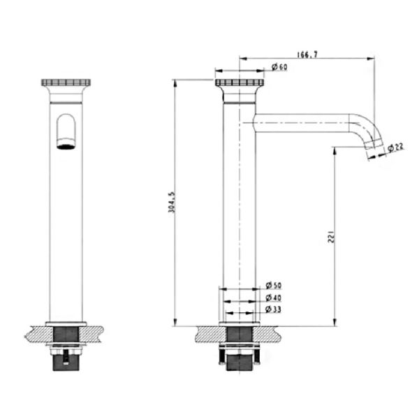 • Высота смесителя: