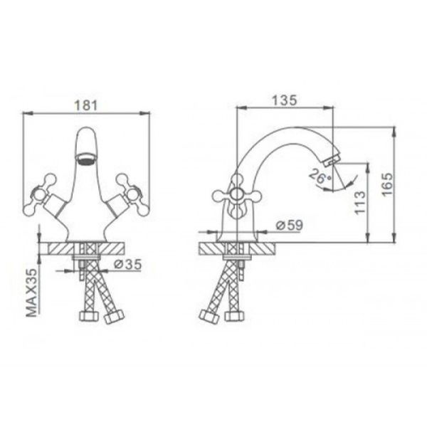 • Высота смесителя:
