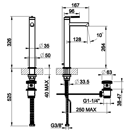 • Высота смесителя: