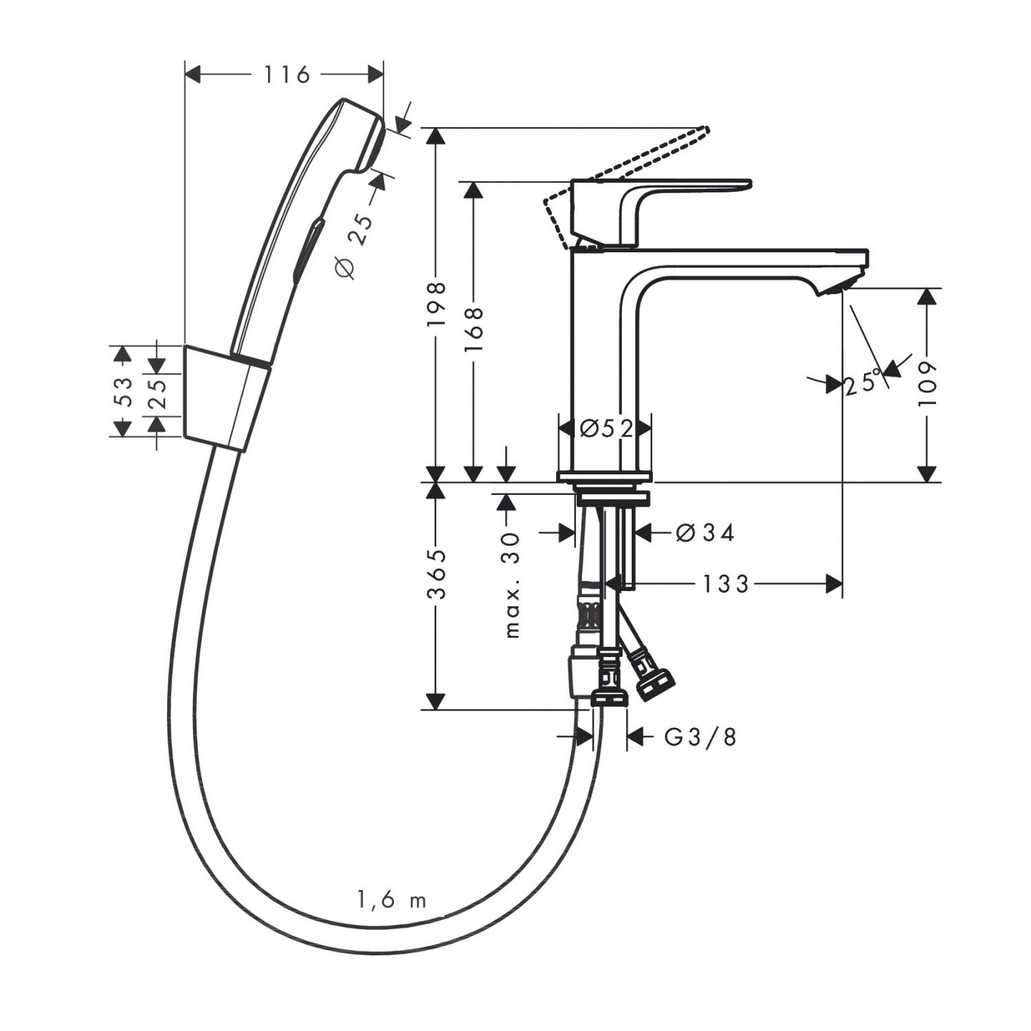 Смеситель для раковины Hansgrohe Rebris S 72215670 с гигиеническим душем, черный матовый