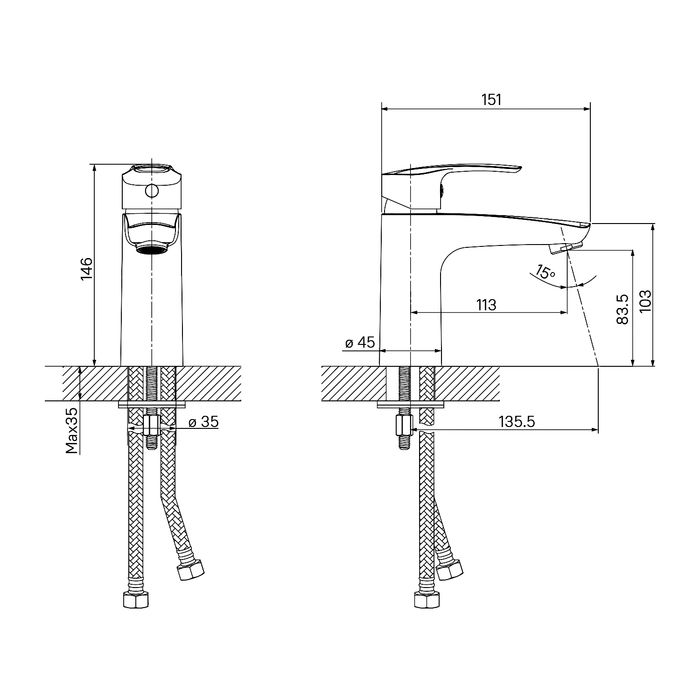 • Высота смесителя: