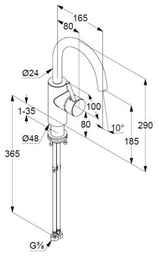 • Высота смесителя: