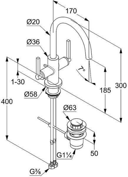 Смеситель для раковины Kludi Nova Fonte Puristic чёрный матовый 201183915