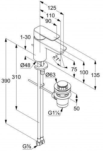 Смеситель для раковины Kludi Pure&Style чёрный матовый 403823975