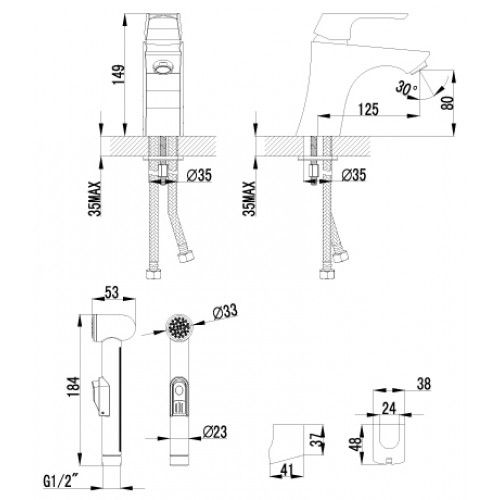 Артикул LM4516CСмеситель для умывальника и биде монолитный