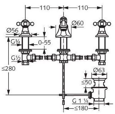 Смеситель для раковины на три отверстия Kludi 1926 позолоченный 510464520 купить