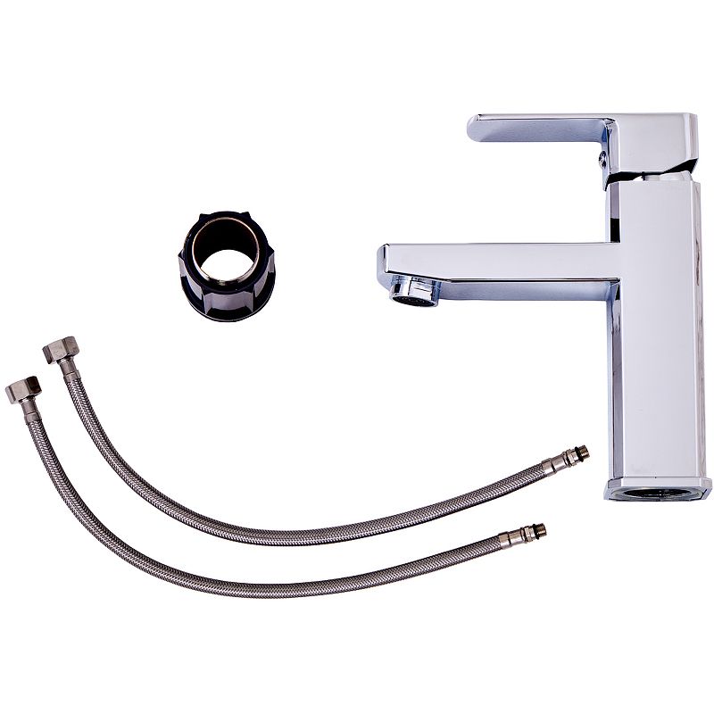 Полимерный смеситель OneLife для раковины P06-021cr, хром.Однозахватный полимерный смеситель для раковины с фиксированным изливом OneLife P06-021b. Фирменный картридж Orange обеспечит легкое управление напором и температурой воды. Вместо привычного латунного сплава он изготовлен из запатентованного высокотехнологичного полимера (выдерживает 510 000 циклов и 53 АТМ без замены изделия после теста на цикличность, исключает возможность обжечься при касании, не подвержен коррозии и окислению, стойкий к отрицательным температурам), что обеспечивает срок службы более 15 лет. Аэратор делает струю мягкой и без брызг. Цвет хром глянцевый. Высота излива 9,3 см.Комплект поставки: смеситель, набор креплений, гибкая подводка, инструкция.