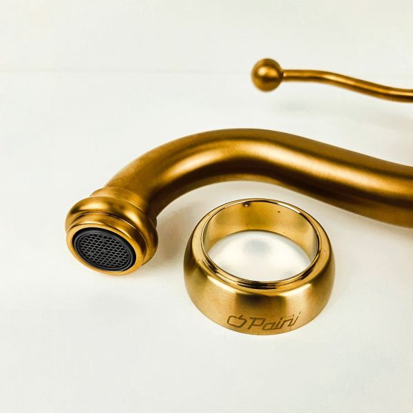 Коллекция DUOMO фабрики PAINI с более чем 60-ти летней историей смогла впитать в себя всё самое лучшее от плавных и уютных линий дизайна давних времен до современных технически сложных механизмов внутри.Однорычажный смеситель для раковины сочетает в себе винтажный стиль с современной начинкой и функциональностью. Затейливая форма рычага делает стиль ретро удобным и практичным, а матовый золотой цвет покрытия, визуально расширяя пространство. Антикварные изгибы DUOMO будут органично смотреться в стилях классика, винтаж или по-новому раскроют интерьер в стиле фьюжн.