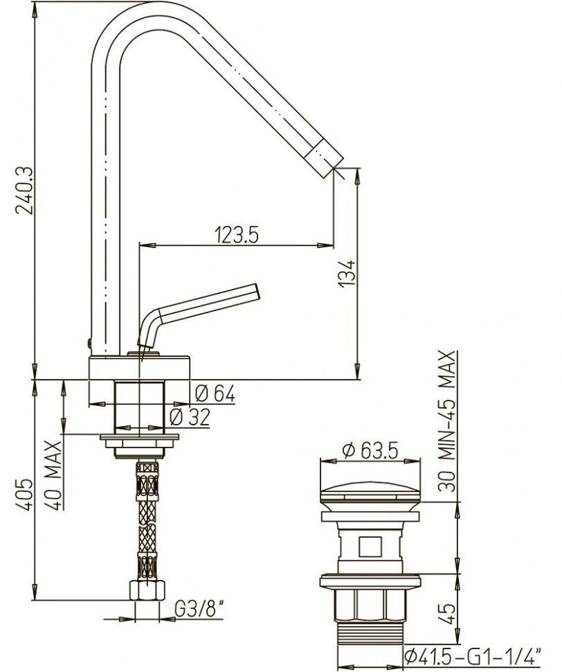 Высота смесителя:24