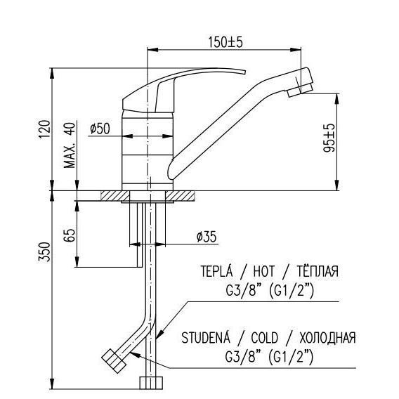 • Высота смесителя: