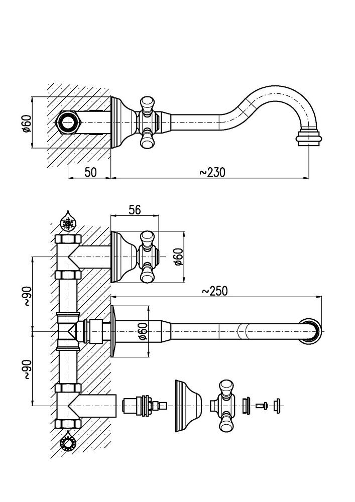 Смеситель для раковины Rav Slezak Morava retro MK131SM бронза купить