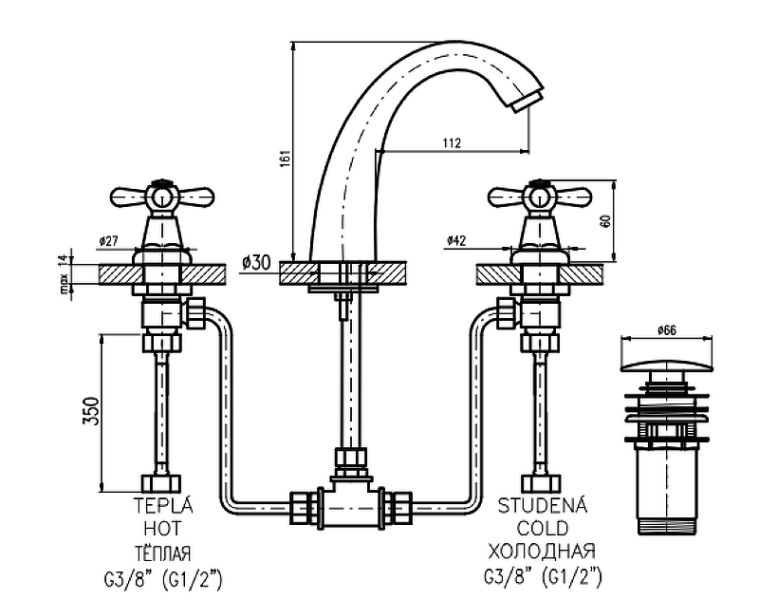 • Высота смесителя: