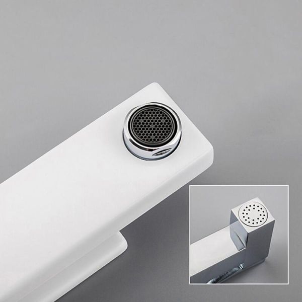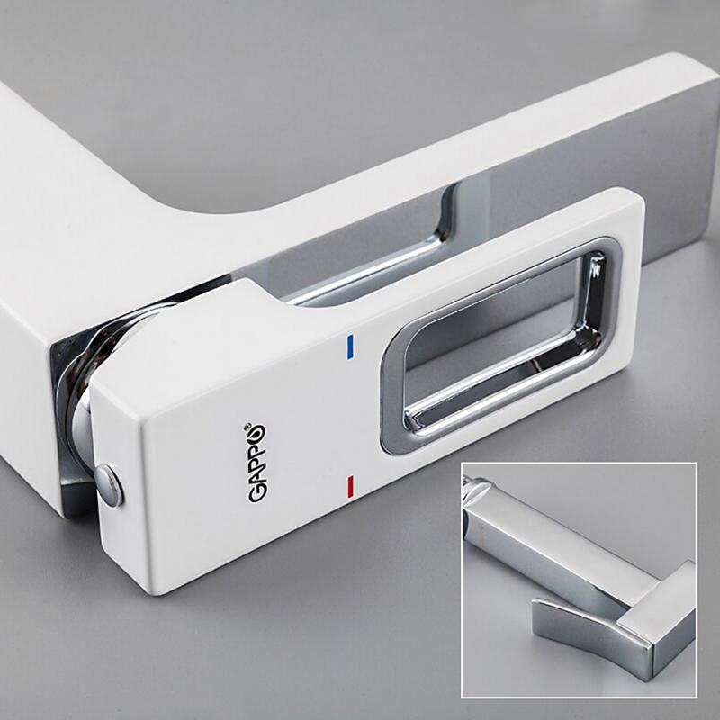 Смеситель для умывальника Gappo Futura G1017-1 с гигиеническим душем - стильная однорычажная латунная модель квадратной формы. Благодаря сочетанию классического конструкционного решения и необычного оформления идеально впишется в современный интерьер. Цвет - хром / белый.