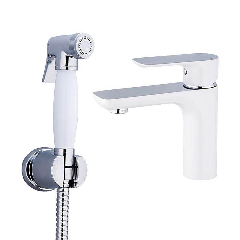 Смеситель для умывальника с ручной лейкой для биде Gappo G1048-1​ - надежная однорычажная модель из латуни. Цвет - хром / белый.