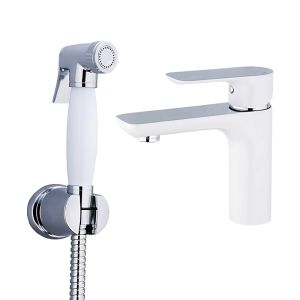 Смеситель для раковины с гигиеническим душем Gappo G1048-1 белый/хром