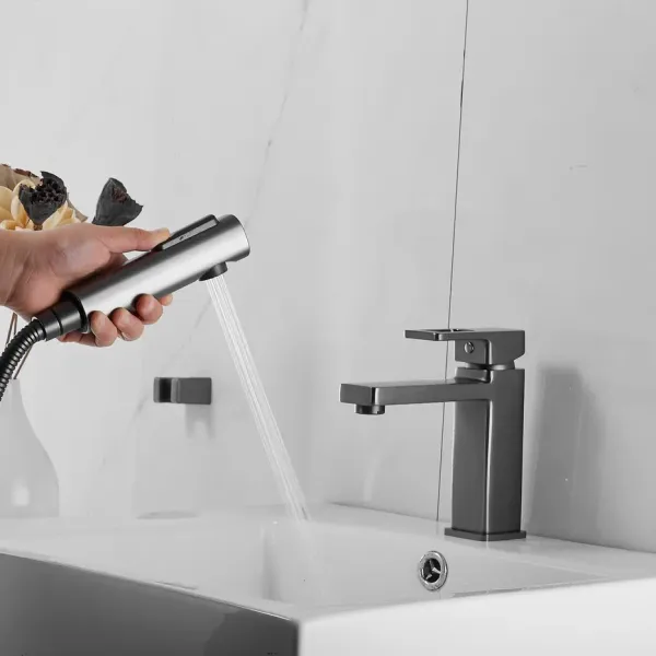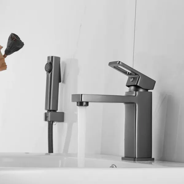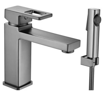 Смеситель для раковины с гигиеническим душем Shevanik S8271T оружейная сталь купить