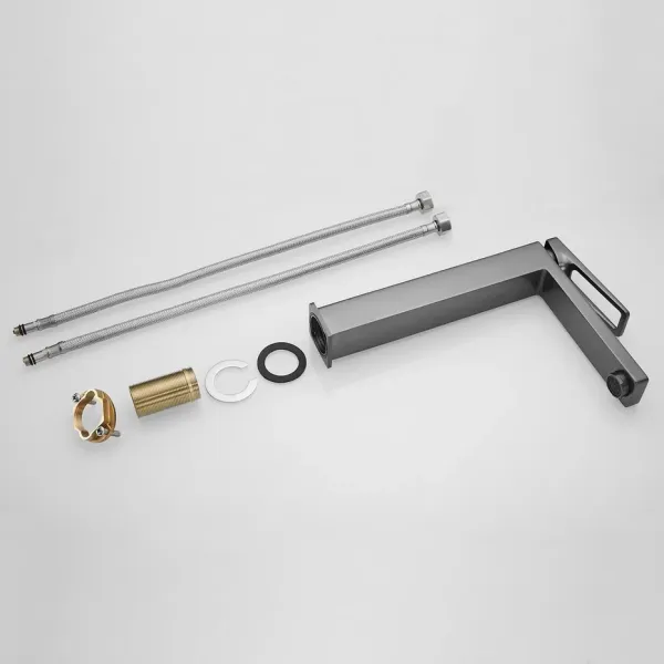 Смеситель для раковины Shevanik S6811T, оружейная сталь.Стилистика дизайна: Современный cтиль.Монтаж: на столешницу.Излив: традиционный, фиксированный.Подводка: гибкая, 1/2" .Материал: латунь.