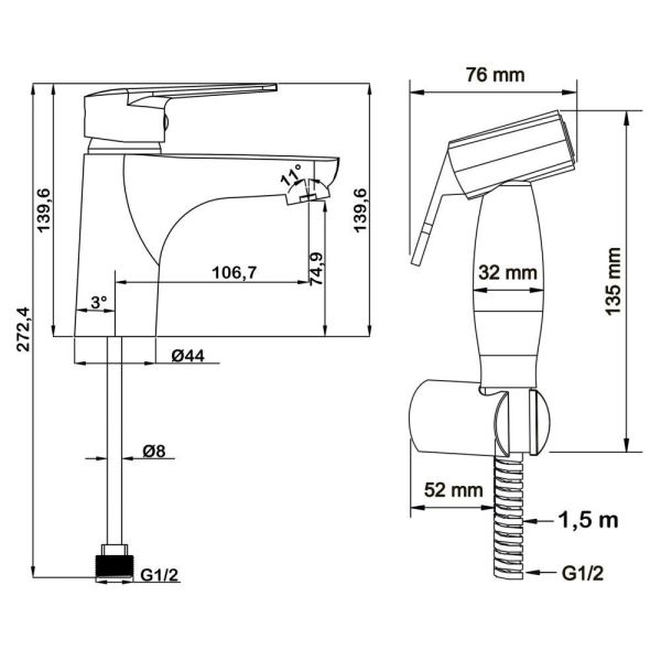 Смеситель для раковины с гигиенической лейкой Керамический картридж Sedal. Аэратор Neoperl. ... Подробнее